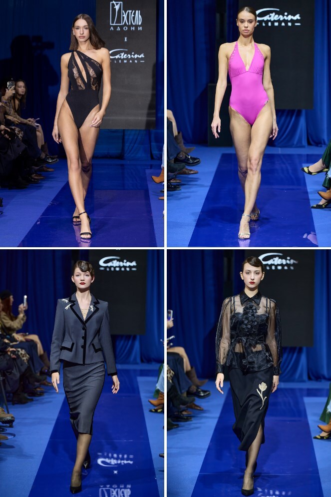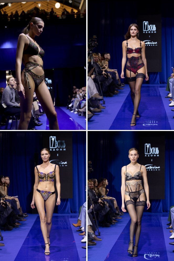 На показе гости увидели самые яркие тенденции сезона в белье и купальниках от ведущих брендов, среди которых были Lise Charmel, Aubade, marlies|dekkers, Chantelle X, SHAN и Melissa Odabash. И главные хиты из новой коллекции одежды от европейского бренда Caterina Leman, предлагающего модные деловые и вечерние образы для современного города. На подиуме также появились модели в смелых луках, сочетающих одежду и элементы бельевого стиля, ставшего одним из главных трендов последних сезонов. Роскошные кружевные бралетты, боди, шелковые бра и топы идеально сочетались с одеждой, украшая и освежая образы, добавляя в женский гардероб соблазнительные акценты.